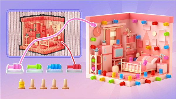 Unravel colored wool from 3D models and wrap it onto matching spools, solving unscrew puzzles while gradually revealing stunning artworks.