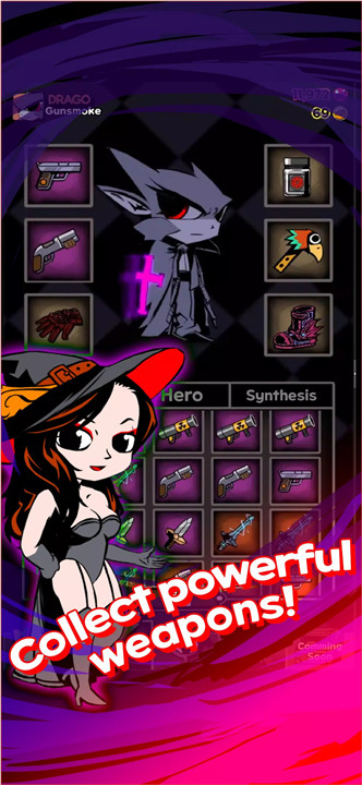 Collect materials from defeated enemies to unlock better weapons and relics, and use offline rewards to level up Drago’s stats.