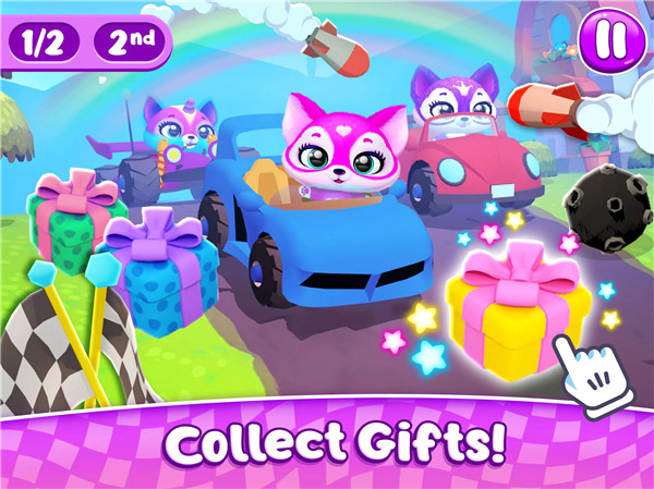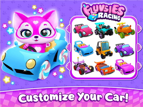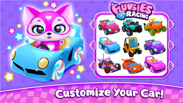 Race cute Fluvsies in Fluvsies Racing! Customize karts, collect power-ups, and conquer fun tracks. Download now and start racing! Fluvsies Racing offers a colorful, fast-paced kart racing adventure designed for kids and casual players alike. Players choose from three adorable Fluvsies and a wide variety of vehicles, ranging from sports cars to trucks, jeeps, and even a whimsical burger car.