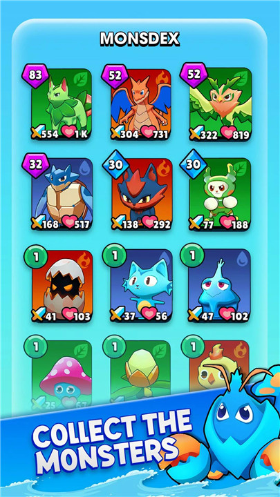 Feed and train your monsters, win battles, and collect rewards to upgrade their abilities and evolve them into stronger versions, helping you build the ultimate squad.
