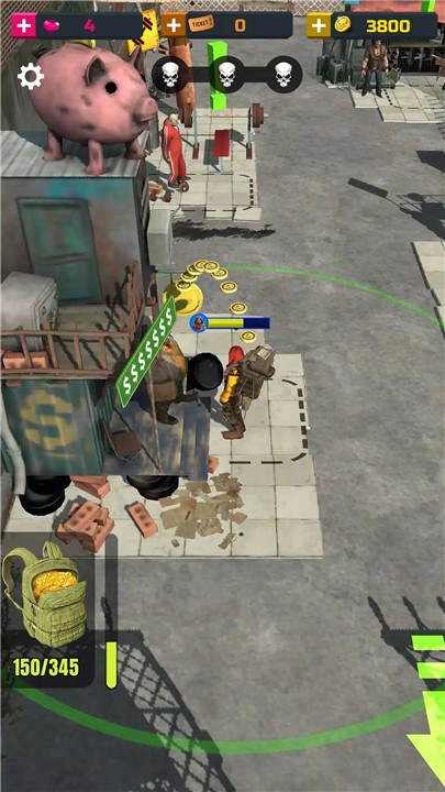 Defeat zombies to earn in-game currency. Deposit it in the bank, watch your wealth grow, and reinvest in upgrading weapons, gadgets, and skills to improve survival chances.