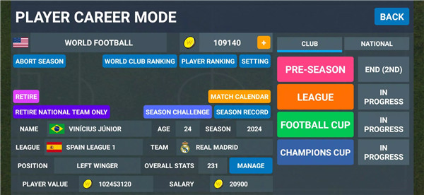 Start at the lowest division and climb the ranks in World League mode. Strengthen your team, invest in player development, and aim for promotion to the highest division. The league system includes promotion and relegation, offering a dynamic and competitive gameplay experience.