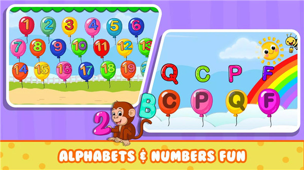 The highlight of the app is its exciting balloon-popping activities, where toddlers pop balloons based on letters, numbers, shapes, or colors. Kids can also enjoy bubble-popping challenges that introduce them to animal and vehicle sounds, making learning dynamic and fun.