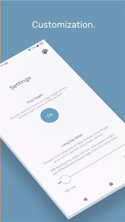 Tap to uncover safe squares and use long taps to place flags. The secondary input with adjustable long tap duration ensures precise control without frustration.