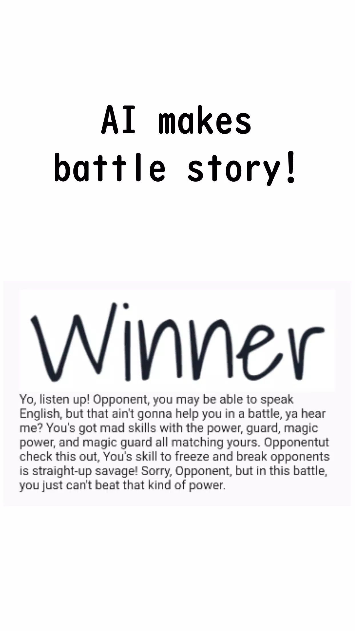 One of AI Battler’s standout features is the ability to enter your character’s status and skills using free text input. This means you aren’t limited by predefined abilities or stats; you can describe any skill or characteristic you want. The AI reads and interprets these inputs to determine the outcome of battles, making each fight uniquely yours.