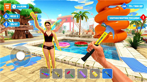 Build, manage, and expand the ultimate aqua park in Waterpark Manager Simulator—run thrilling slides, hire staff, and grow a splash-filled empire now! This vibrant water park tycoon game delivers an addictive idle management experience set in a lively summer atmosphere. From humble beginnings with a single pool to a massive destination packed with rides and attractions, Waterpark Manager Simulator blends fast-paced fun with strategic decision-making.