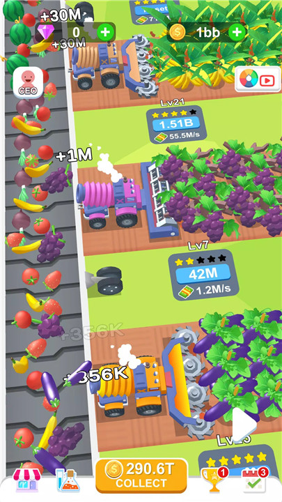 The smooth animations and colorful design make harvesting visually pleasing, turning simple taps into a satisfying rhythm of progress and reward.