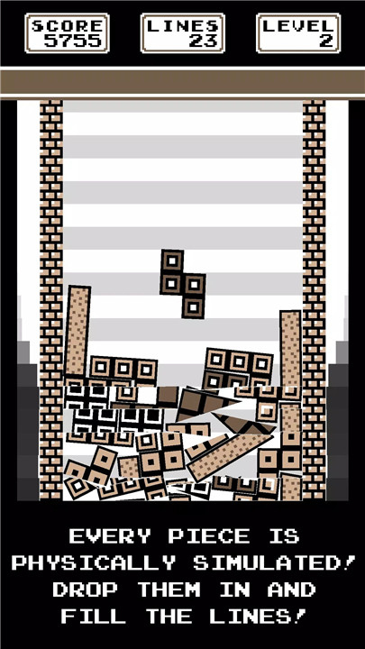 Lines clear when they are sufficiently filled rather than perfectly aligned. When a clear occurs, blocks are sliced into smaller pieces instead of disappearing instantly. These fragments continue to interact with the environment, often creating chain reactions and surprising outcomes.