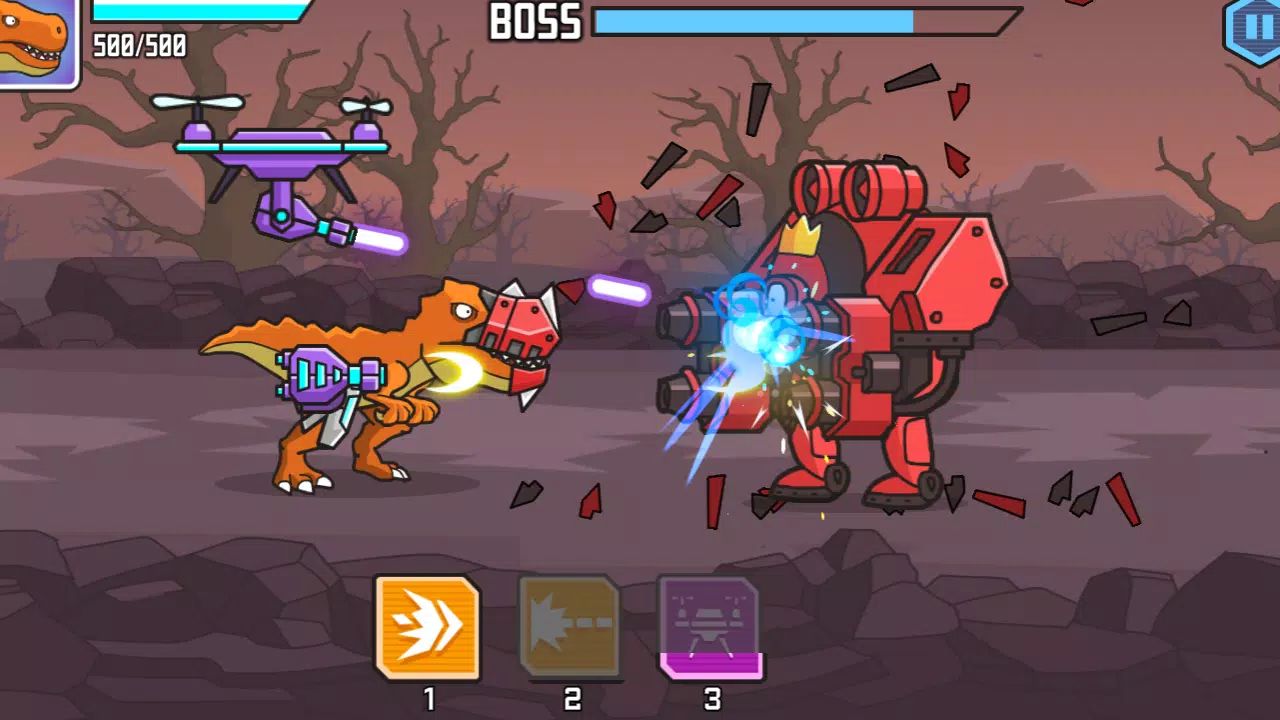 CyberDino: T-Rex vs Robots is a free, ad-free action game—fight robots, craft gear, upgrade abilities, and become the ultimate CyberDino today. Set in a futuristic world where cyber-enhanced dinosaurs clash with robotic foes, this side-scrolling action game combines fast-paced combat, strategic upgrades, and immersive gameplay. Players control a powerful T-Rex equipped with advanced abilities, battling waves of enemies and conquering dangerous regions.