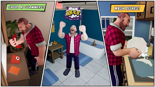 Beyond household chores like washing endless dishes or fixing constantly leaking pipes, the game adds humor through over-the-top situations such as dealing with strange cultists disliked by the neighborhood and answering phone calls just to shout at scammers.