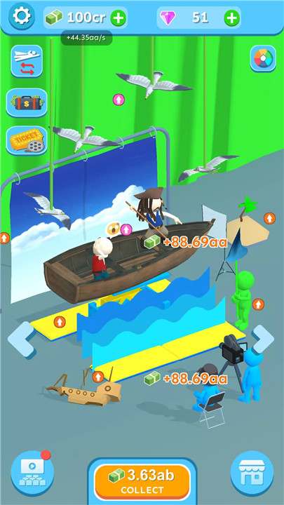 As the studio grows, production skills and equipment can be upgraded to enhance movie quality and profitability. Upgrades unlock new sets, props, and filming techniques, allowing for increasingly elaborate productions. A well-developed studio leads to higher box office returns and faster progression.
