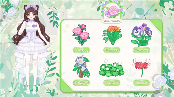 It’s a casual anime-style simulation game where you can grow magical flowers, create themed outfits, and dress up chibi dolls.
