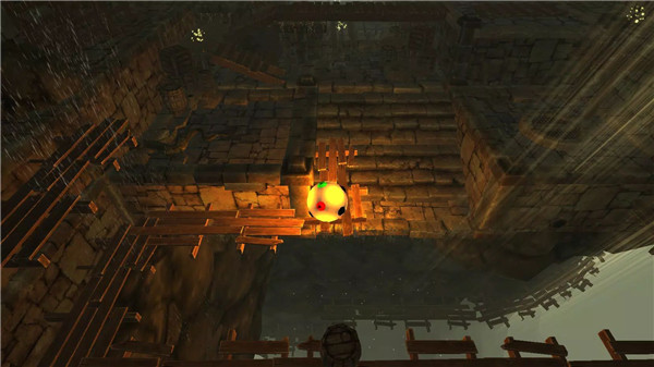 The controlled ball is no ordinary object. Up to eight energy sensors can be activated by collecting magic sources hidden inside chests. Each locked gate requires specific magic energies to open, adding a strategic layer to progression. If the ball falls, collected energies remain saved from the last unlocked gate, encouraging experimentation without harsh penalties.