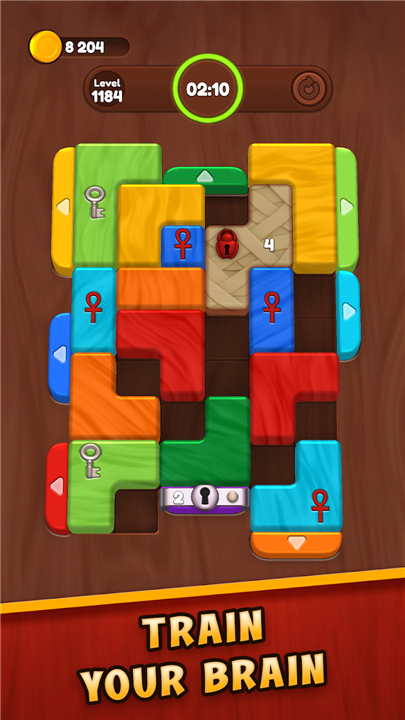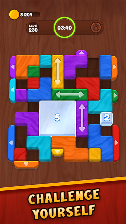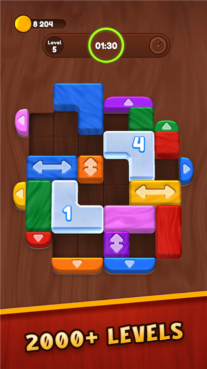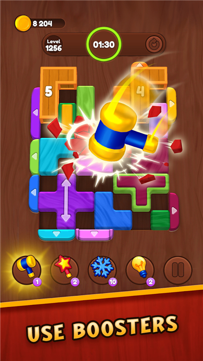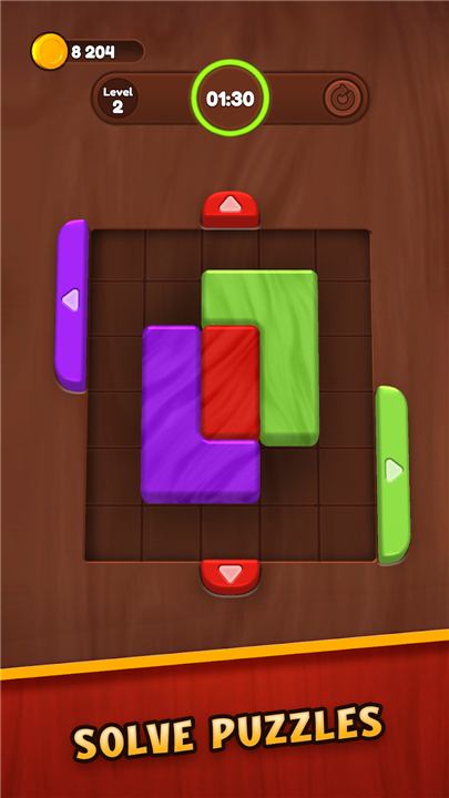• Slide Blocks: Simply swipe in any direction to move wooden blocks across the board.