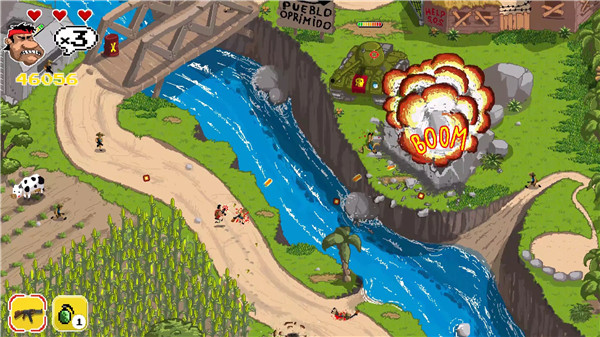 You’ll navigate jungles, enemy-occupied cities, and fortified enemy bases in a visually engaging pixel-art world.