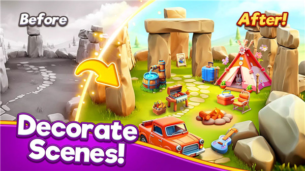 Kick off your adventure with bonus moves and level support! Start your journey smoothly and dive into the world of travel, puzzles, and creative decorating from day one.