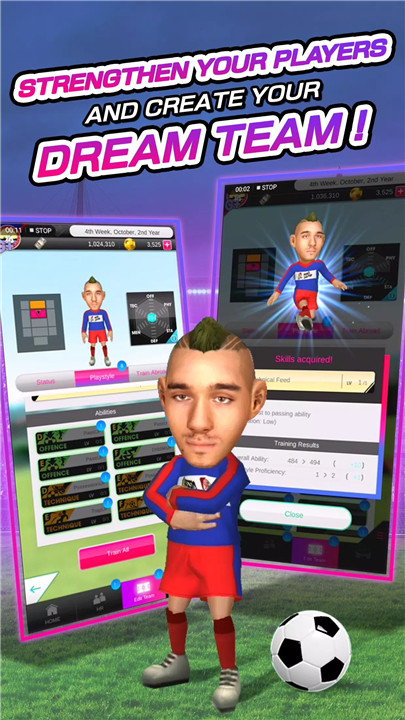 Footie Face enables managers to personalize their team by transforming friends, family, or even themselves into unique players. Simply snap a photo and watch it become a player with distinct attributes, adding a fun and personal twist to team building.