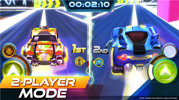 Race in 1-player mode to challenge yourself or in 2-player mode to compete against friends. The multiplayer mode allows head-to-head action, testing both speed and strategy. Each race provides a chance to earn rewards and climb leaderboards.