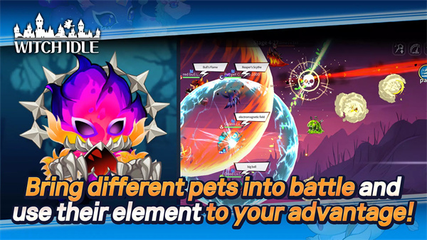 Each pet has unique abilities and elemental strengths. Strategically summon and upgrade pets that complement your witch’s skills to maximize battle efficiency.
