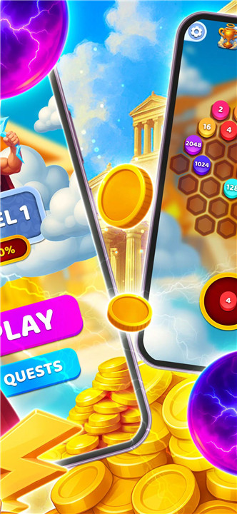 Merge numbers on Olympus peaks in ZeusMerge: Thunder of Olympus—plan smart moves, trigger chain reactions, and reach higher scores today! This strategic number-merging puzzle is set amid the majestic peaks of ancient Olympus, where careful thinking and foresight are key to mastering the board. Players place numbered tiles on a hexagonal grid, combining identical numbers to create stronger values and unlock greater scoring potential.