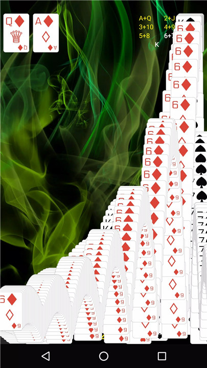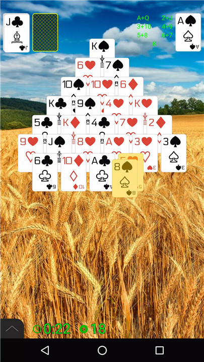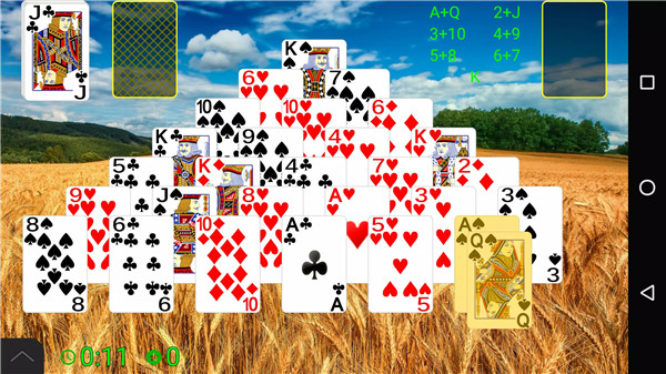 Gameplay follows the traditional Pyramid Solitaire structure. Kings are automatically removed, while Queens, Jacks, Aces, and numbered cards must be paired to reach a total value of 13. Cards can be selected from the pyramid, draw pile, or waste pile, offering multiple tactical choices in every game.