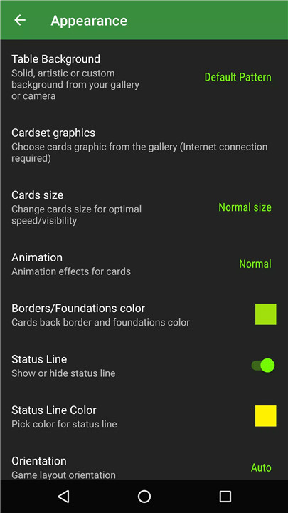 The game supports custom card sets, backgrounds, card backs, color adjustments, and gallery photos.