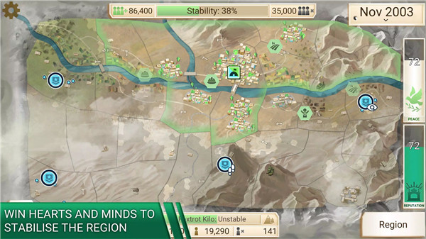 The Billionaire is ready to bring peace to every region! Bribe insurgents, invest funds, bring in your own charity and throw money at every problem that appears.