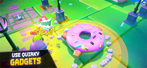 Discover funny gadgets like magnets, a Punch Tank, and a Magic Donut to use in fights.