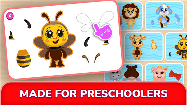The app is designed specifically for young children with intuitive drag-and-drop interactions. Large puzzle pieces and simple controls make it easy for small hands to move and place pieces accurately. The clean interface allows children to play independently with minimal guidance.
