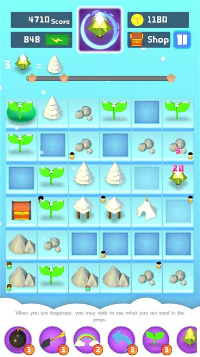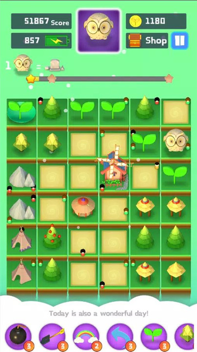 Combine three identical items to upgrade them into a more advanced structure. Keep merging to unlock bigger homes and buildings.