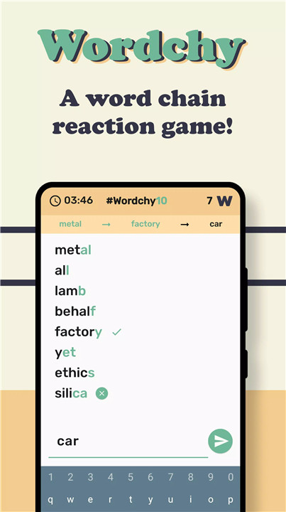Wordchy is a word chain reaction game where players connect related words to create long word sequences while improving vocabulary and language skills.