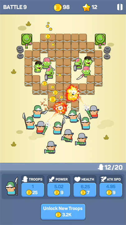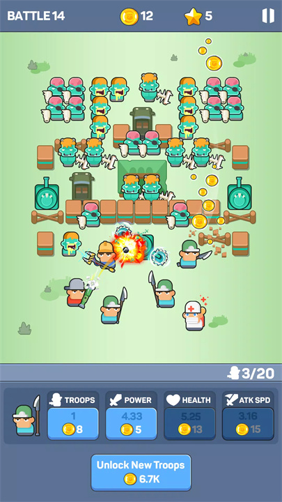 Plan Ahead: Each new stage features a new map with different obstacles. Take a moment to study the layout and think about how best to deploy your resources before engaging in battle. A well-thought-out strategy can make all the difference.