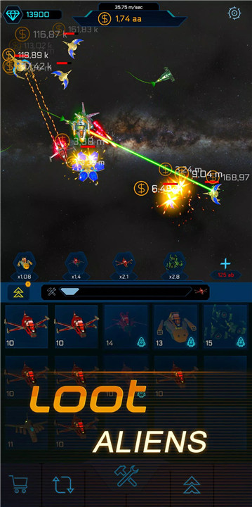 Every spaceship participates in simulated idle space battles against alien invaders. Battle slots can be upgraded to increase combat strength and income rewards. Visually rich encounters showcase fleets crushing enemies across the galaxy, blending strategy with spectacle.