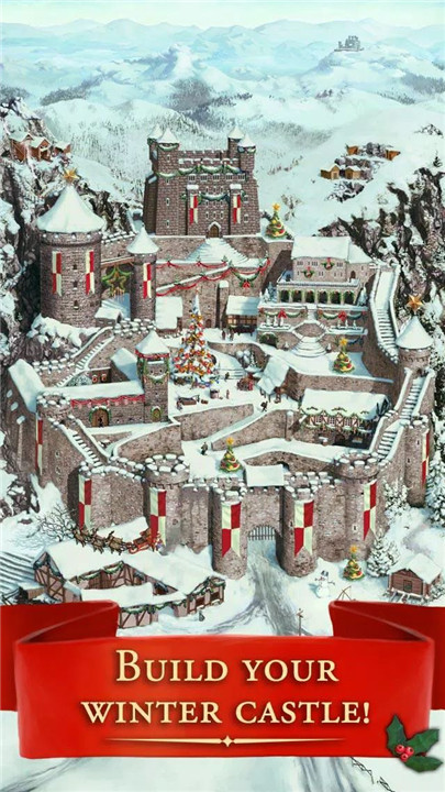 Experience the core mechanics of building, conquering, and expanding within a beautifully decorated winter world. Snow blankets castles and landscapes, creating a visually immersive holiday environment.