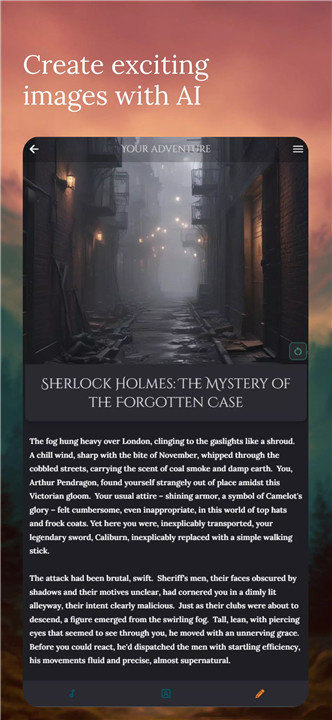 Every story in StoryZone is enhanced with AI-generated visuals that bring scenes to life. From epic battles to intimate moments, the images are crafted to match the tone and atmosphere of your narrative. In addition, StoryZone includes an audiobook mode that turns your story into an immersive AI-narrated audio experience, further enhancing the way you experience your journey.