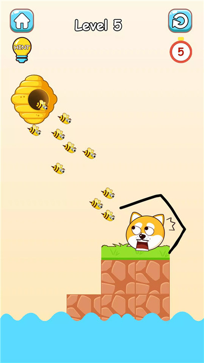 Simply draw one continuous line with your finger to build a wall that protects the dog from bees. Hold your wall for 7 seconds and win the level!