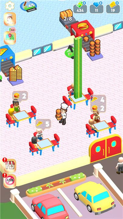 Once your factory starts thriving, it’s time to open your café — the heart and soul of your pizza empire. Here, customers gather around tables to enjoy handcrafted artisanal pizzas made fresh from your factory. Each sale boosts your income, letting you unlock more tables and welcome even more pizza lovers.