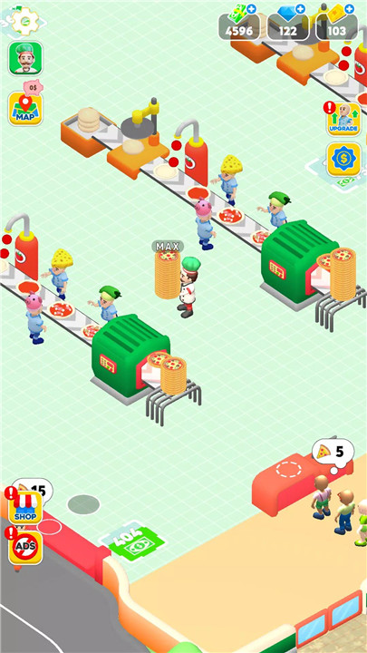 You start with a small pizza factory, upgrade machines and chefs, and later expand into a café where customers enjoy your artisanal pizzas. Idle mechanics let you progress even while offline.