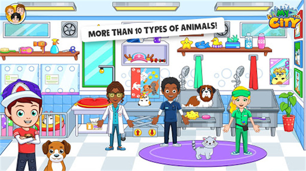 Meet friendly vets, caretakers, and visitors. You can also bring characters from other My City games to expand your role-playing experience.