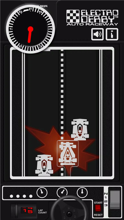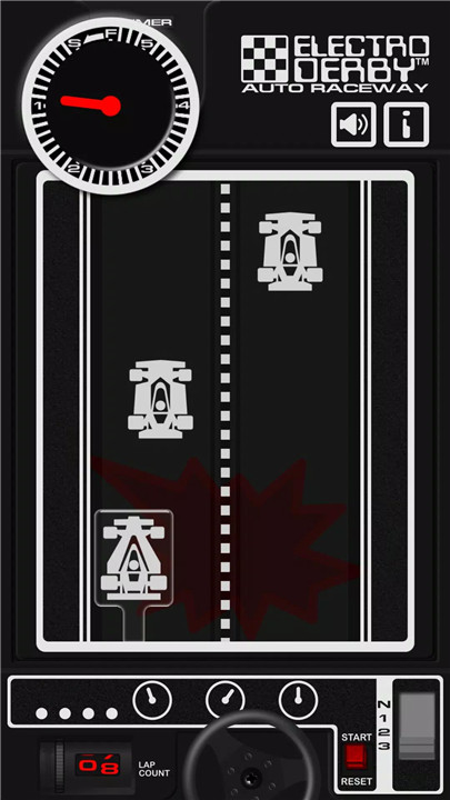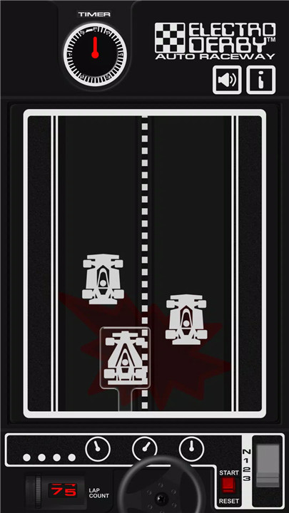 Electro Derby is a virtual recreation of a popular late 1970s portable racing game, adapted for modern mobile devices.