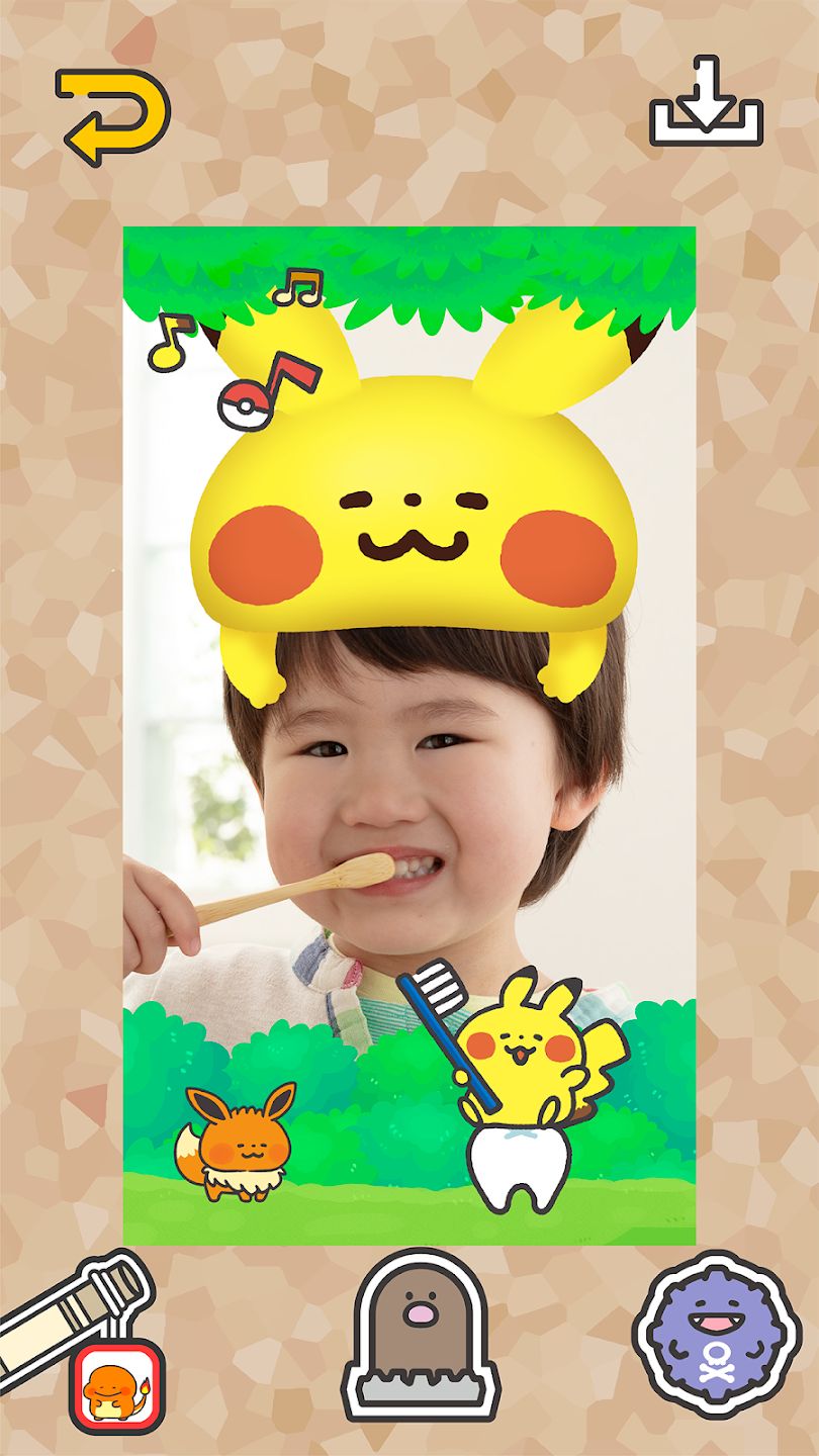 During brushing sessions, the app captures photos of the player in action. Users can choose their favorite shots and decorate them with stickers, adding a creative and interactive layer to the experience.