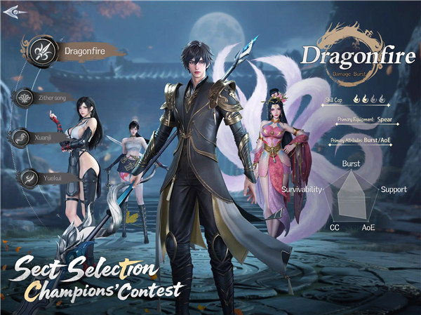 The world unfolds across beautifully crafted regions, each inspired by traditional fantasy aesthetics. From the ethereal Heavenly Origin Sanctuary to the blazing red maple forests of Danfeng Valley, every location tells its own story. Ancient mysteries await within the Dragonbone Ruins, while the mist-covered Azure Cloud Sect radiates serenity and power. Additional dreamlike landscapes such as the Spirit Altar Immortal Realm, Cangwu Spiritual Land, and Reflecting Moon Lake further immerse players in a living, breathing world of cultivation.