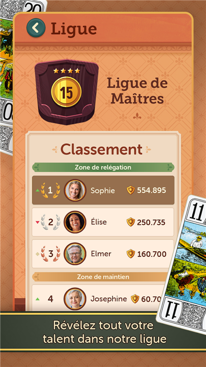 • Discover the strategic depth of French Tarot, France’s beloved classic card game, now available for free and on the go.