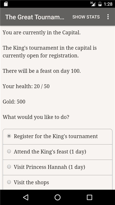 The Great Tournament is a richly written interactive fantasy novel by Philip Kempton, spanning approximately 180,000 words of branching narrative. Entirely text-based and driven by imagination, the story follows a young peasant boy whose life changes when he becomes squire to a legendary knight. Set in a vivid medieval world, the journey unfolds through training, competition, and difficult decisions that shape both character and kingdom. Every choice influences the path forward, leading toward honor, ambition, or domination as the realm’s fate hangs in the balance.