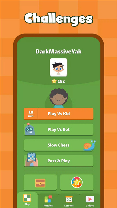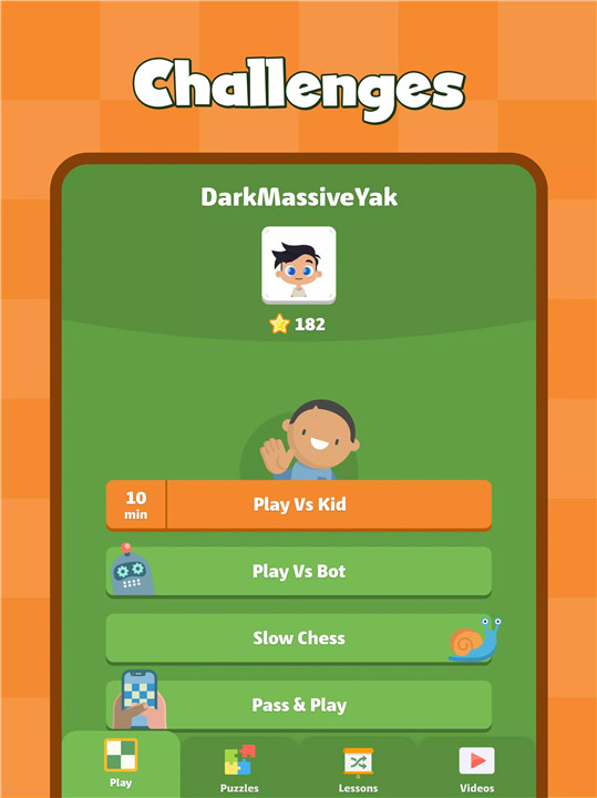 ChessKid lets kids play unlimited chess games online for free. Join tournaments to compete against players worldwide, or challenge friends to play. Play with kids from all over the world or go head-to-head with our humorous chess bots for a fun and challenging experience.