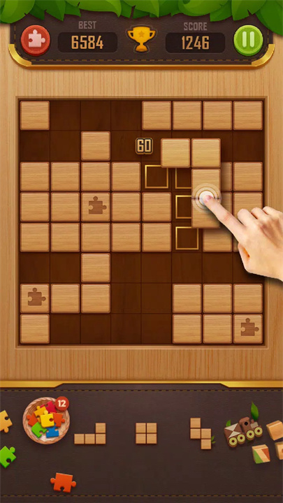 Fill rows or columns in the block puzzle and complete pictures in the jigsaw puzzle to score points.
