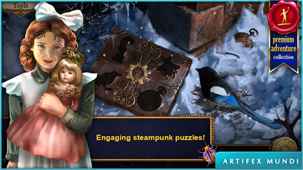 It is now up to his loyal friend, Agent Evangeline Glass, to find Dr. Ink and solve the mystery of the earthquakes. With only a mechanical raven to guide her, Evangeline must explore the castle, solve puzzles, and find hidden objects. Along the way, she will face many challenges, including sneaking into the castle and dealing with the General Engineer of Gottland.