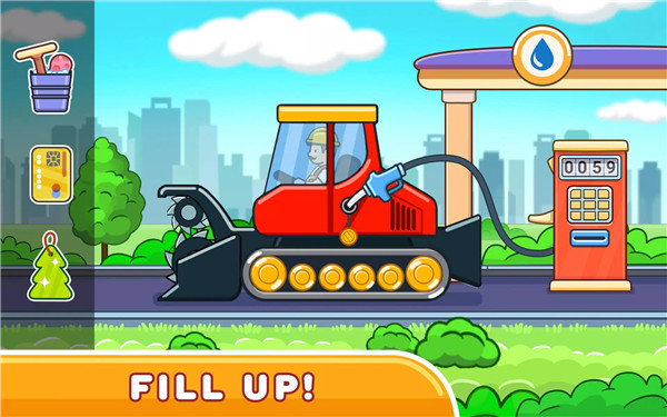 In addition to building and racing, children can take part in car care activities. The game features a car wash where kids can clean their vehicles using water, soap, and bubbles. They can also visit a refueling station to fill up their cars before heading to construction sites, teaching them about vehicle maintenance in a playful manner.