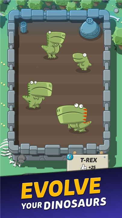Solve interactive jigsaw puzzles to bring dinosaurs back to life. Combining different fossils and species allows players to discover new variations, witnessing the crazy evolution of their dinosaurs. This mechanic adds depth to gameplay, enabling endless creativity and experimentation in building a unique prehistoric collection.