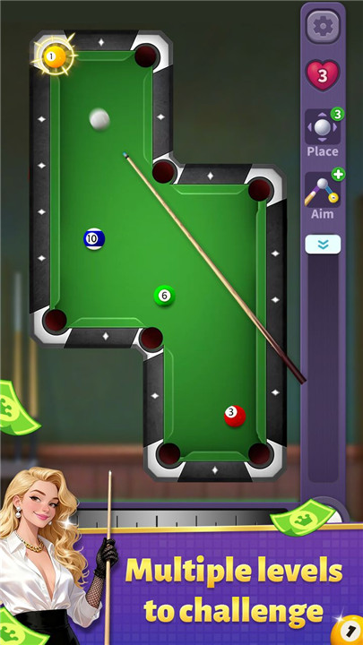 Switch between a variety of colorful skins, including stylish cues and eye-catching table designs. Personalization options allow the creation of a unique and visually appealing pool setup.